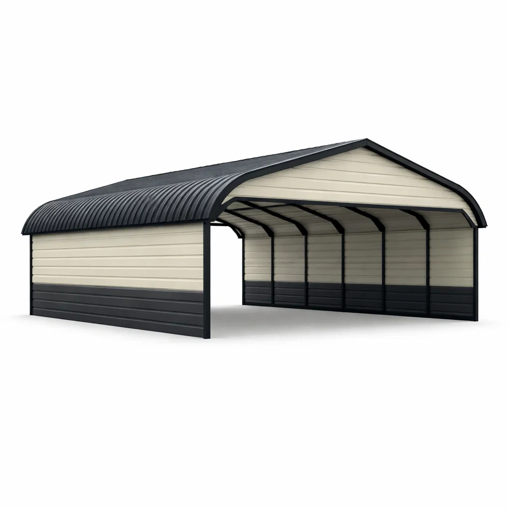 Carport in metallo beige e nero con tetto ad arco
