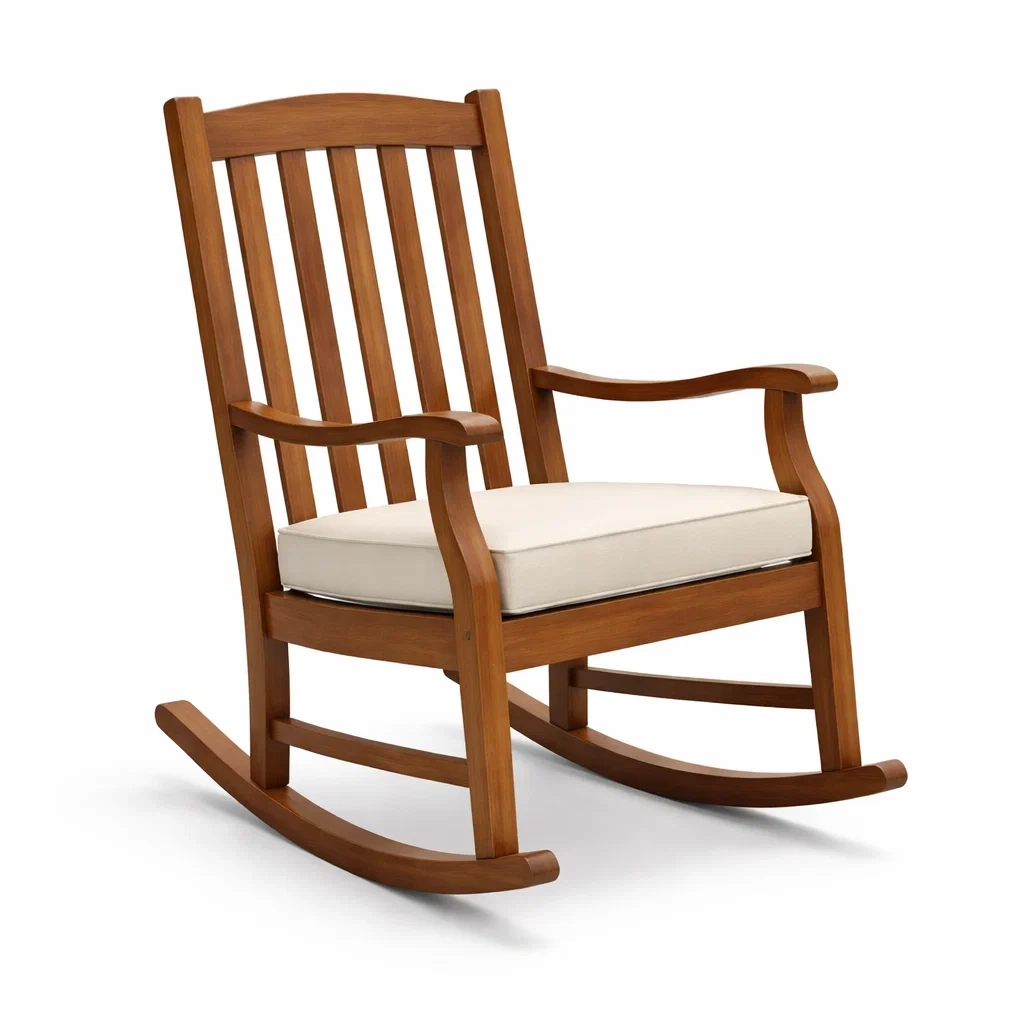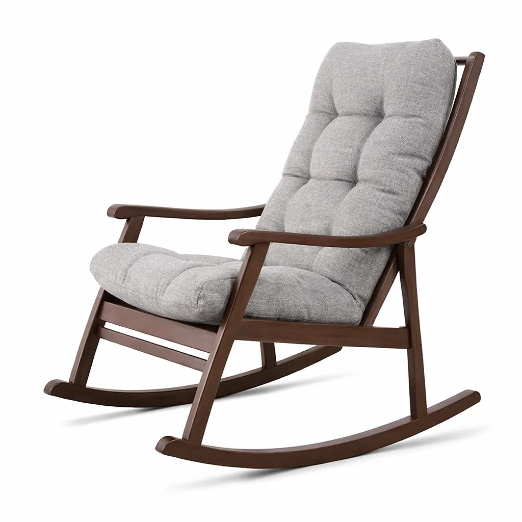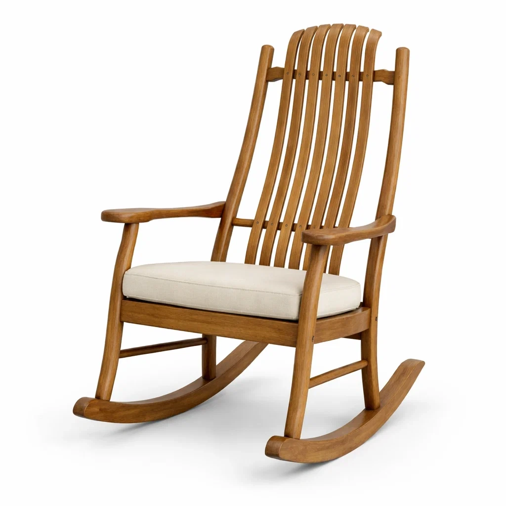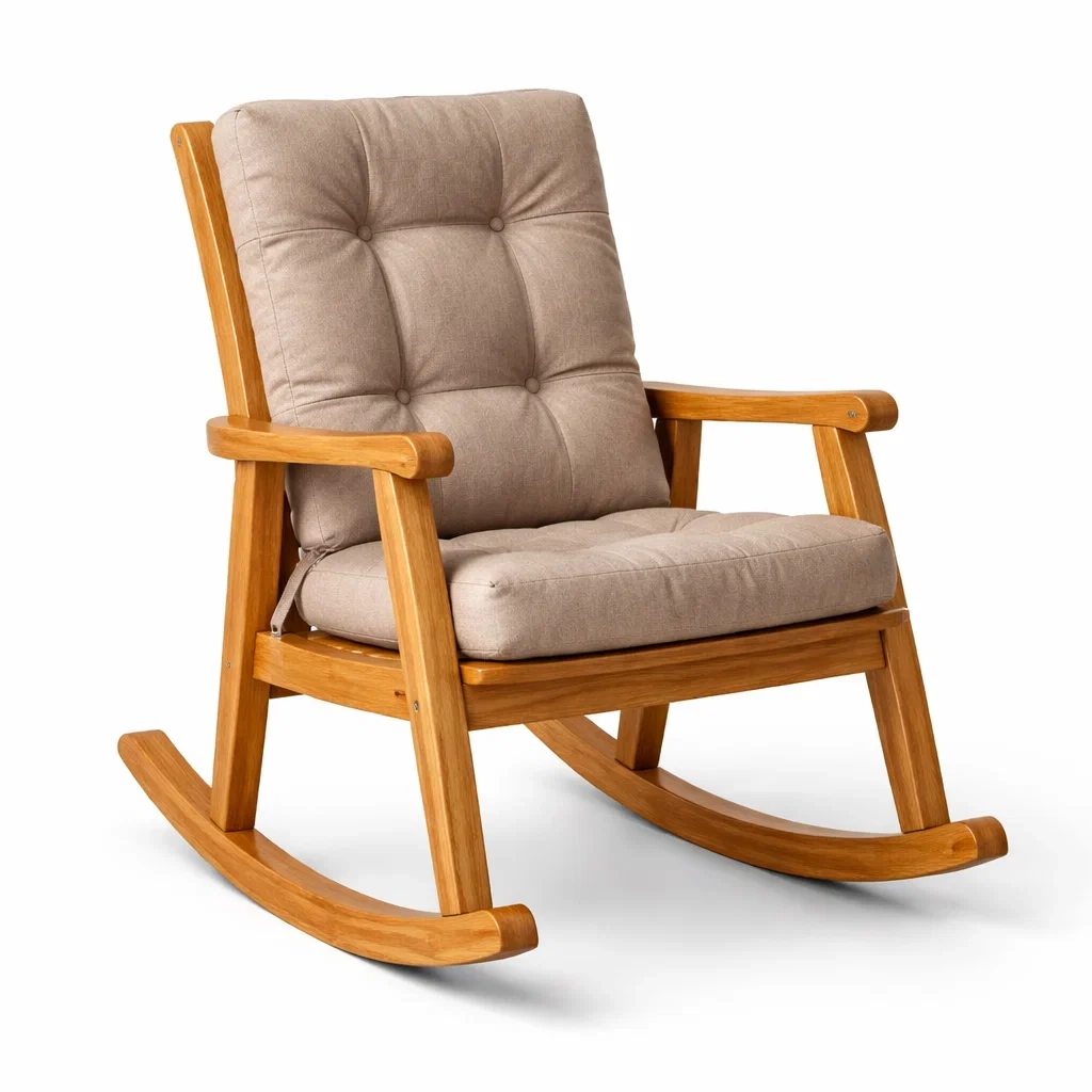 Sedia a dondolo in legno massello con cuscino in poliestere