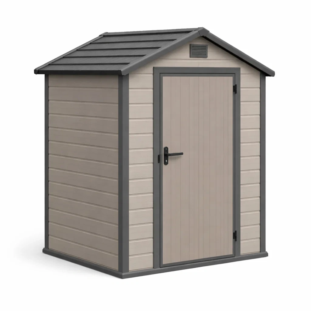 Capanno da giardino in plastica beige e nero con porta singola