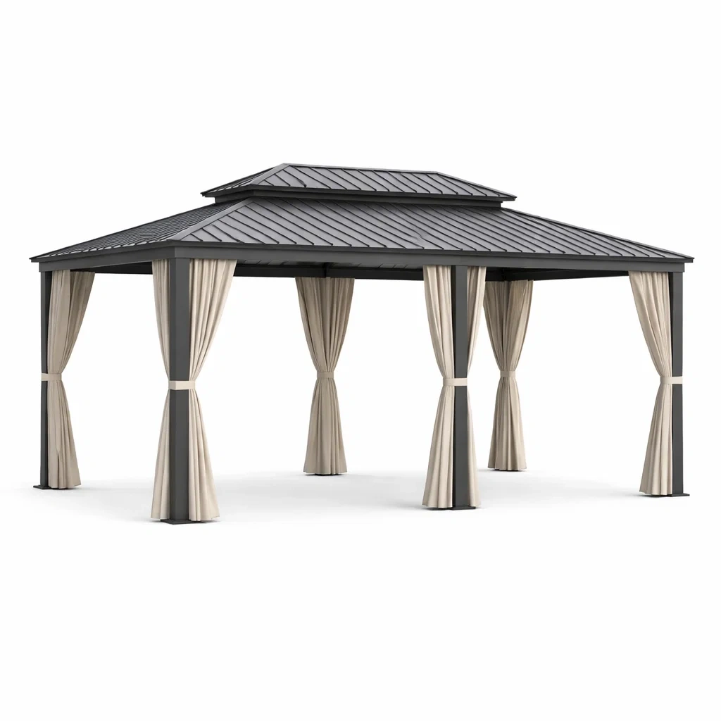 Materiale: Struttura in alluminio, tetto in acciaio, tende in poliestere.