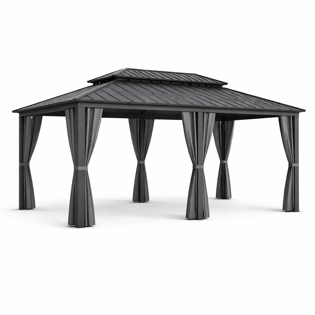 Gazebo in alluminio con tetto in metallo grigio