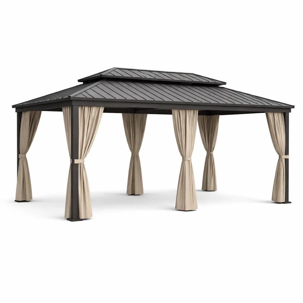 Gazebo rettangolare in alluminio e poliestere con tetto in acciaio