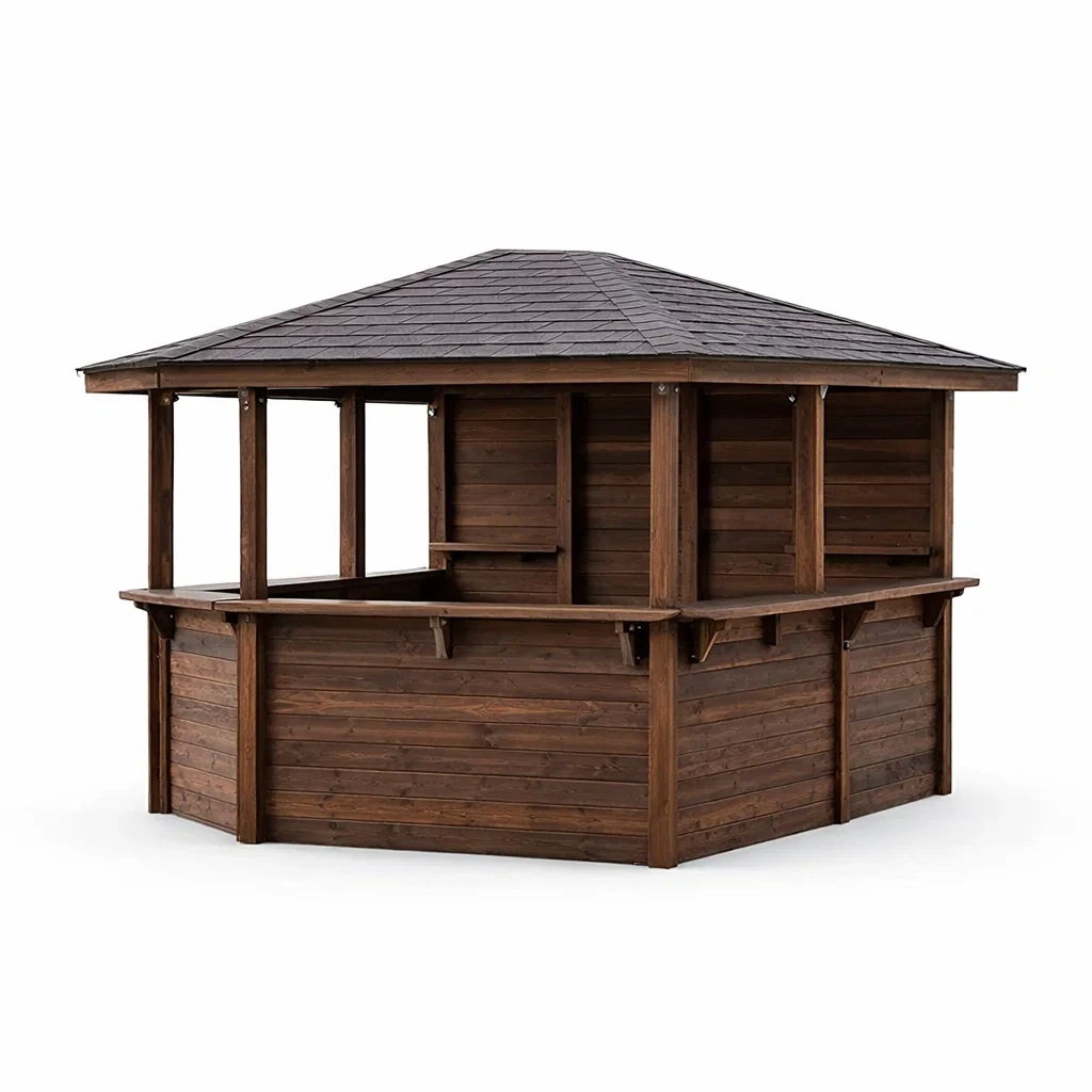 Questo chiosco da giardino in legno di abete offre uno spazio ideale per eventi all'aperto. La struttura è robusta e resistente alle intemperie, mentre il tetto a quattro falde protegge dal sole e dalla pioggia.