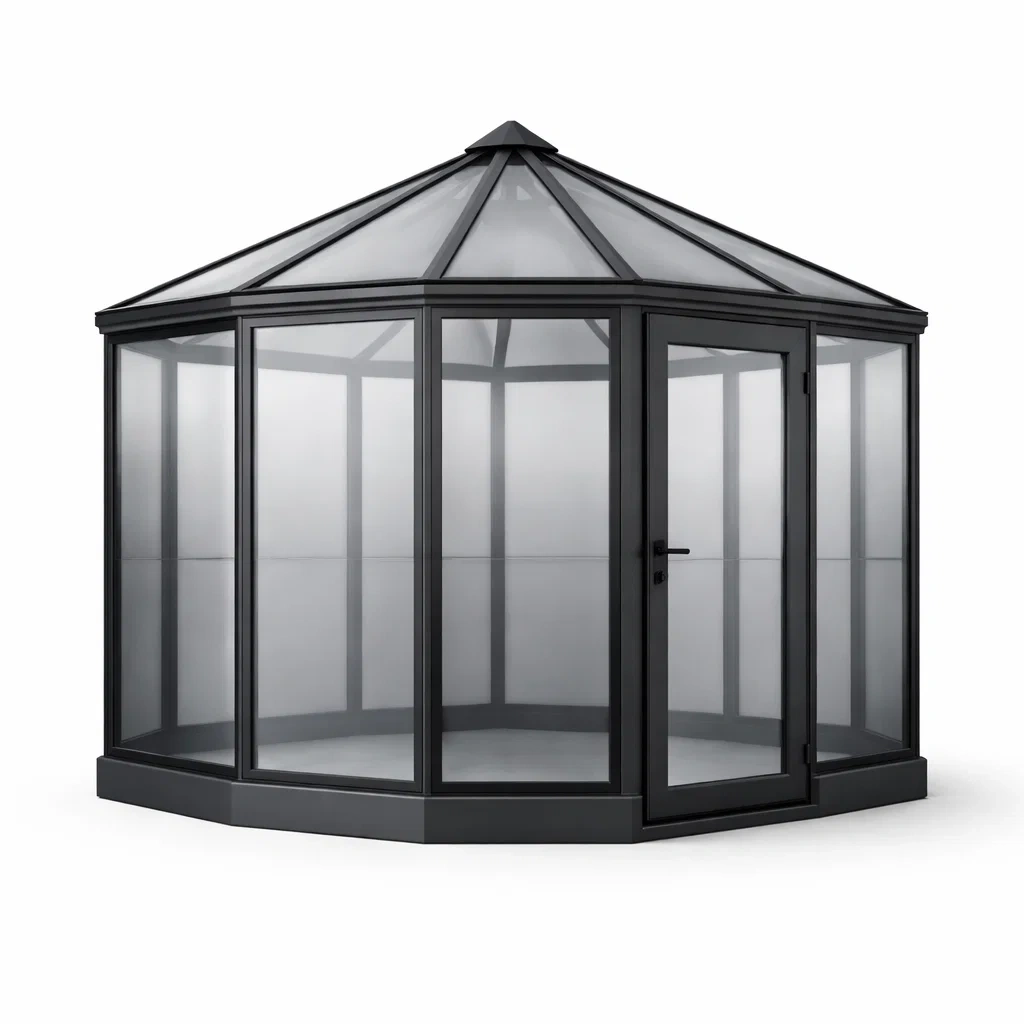Materiale Tipo: Struttura in alluminio con pannelli in vetro temperato da 4 mm.